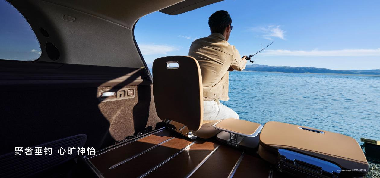 超大后备箱可轻松装下4个28英寸行李箱、1个高尔夫球包和其他,满足旅行、露营全家储物需求。后备箱盖板下方采用双暗格设计,容积分别达到56L和20L,隐私物品轻松收纳。后备箱配备了一键调节车身高度功能,轻松装载、轻松拿取。标配硬质遮物板、双滑轨,结合首销期赠送的定制储物箱、行李限位器、皮质腰靠、皮质腿托垫,可选装的多功能装载托盘、山海坐席等专属定制化配置,解锁更多出行场景。