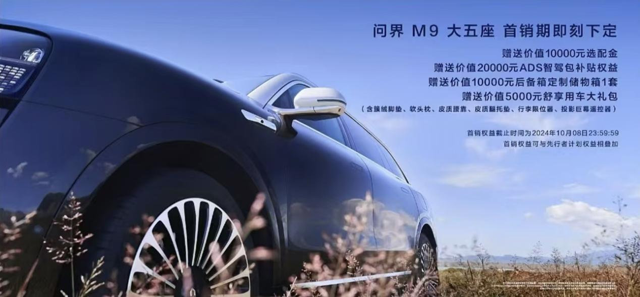 用户即日起可在全国600+线下阵地,华为商城3D在线看车、HIMA官网、AITO官网、我的华为App、AITO App等官方渠道预约体验试驾。问界M9大五座面向定购用户开启先行者计划,限额1000名,2024年10月1日前陆续安排先行者计划车辆发运和交付,10月中旬开启规模交付,详见官方公告。