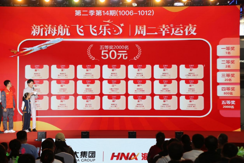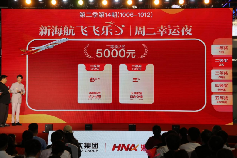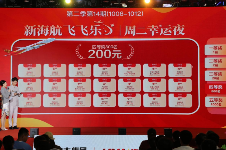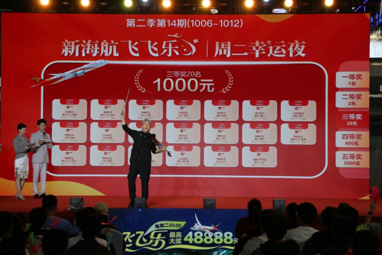 “飞飞乐”周二幸运夜现金抽奖活动是新海航与消费者共享发展成果、助力航空旅游经济发展的旅客回馈活动,每周二晚8点通过“海南航空”APP直播抽奖,奖项方面设置了48888元、5000元、1000元、200元和50元五个等级的奖项回馈旅客。目前的第二季抽奖活动从规则设置上进一步提升“海南航空”APP实名认证用户体验,为实名认证用户和旅客带来更多惊喜与实惠。同时,如果符合指定条件,还有机会让抽奖机会翻倍,单人最高可获8倍抽奖机会。