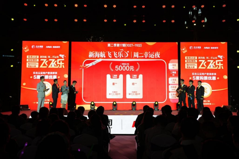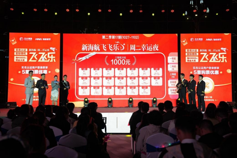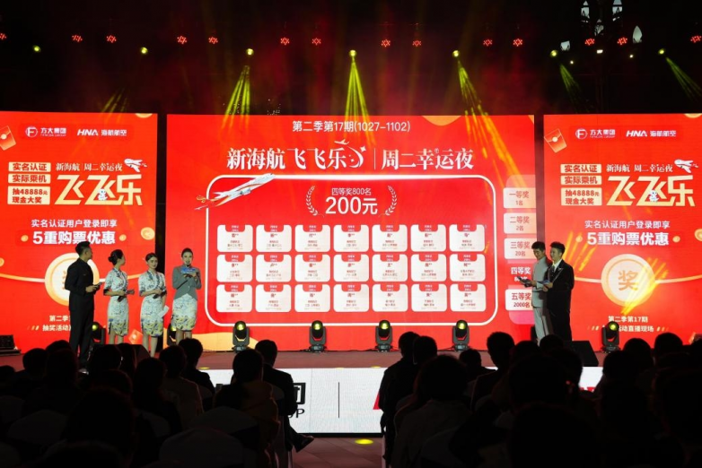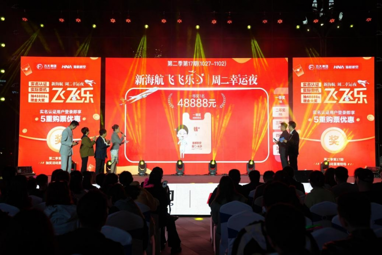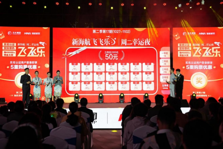 “飞飞乐”周二幸运夜作为新海航回馈旅客、促进航空旅游经济发展的品牌活动,每周二晚8点通过“海南航空”APP直播抽奖。活动设置48888元、5000元、1000元、200元及50元等多档现金奖励,并在第二季进一步优化规则,提升实名认证用户体验,符合条件的用户可享多倍抽奖机会,单人最高可获8次机会。