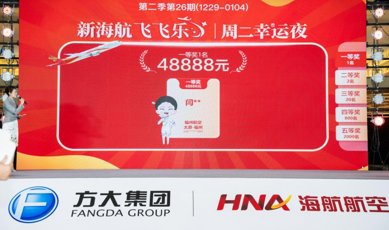 作为新海航倾力打造的旅客回馈品牌IP,新海航“飞飞乐”周二幸运夜抽奖活动已深入人心,成为每周必约的“幸运盛宴”。活动每周二晚8点通过“海南航空”APP准时直播,设置48888元、5000元、1000元、200元及50元多档现金奖励,参与规则清晰:凡在前一个自然周内,持中国大陆有效身份证件实际乘坐过新海航旗下11家境内航司任一航班的实名认证用户,均可无门槛参与抽奖,并有机会享受多倍抽奖机会的额外奖励。
